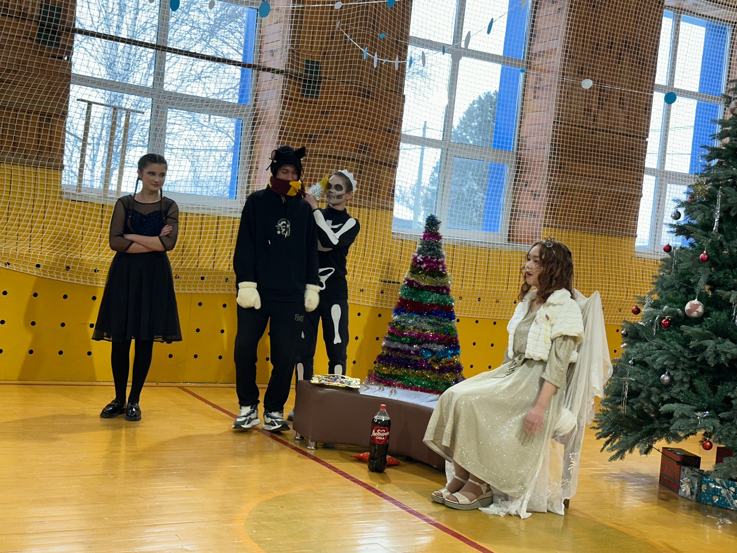 Репетиции проходят в актовом зале школы, в который в прошлом году был приобретен новый занавес.
