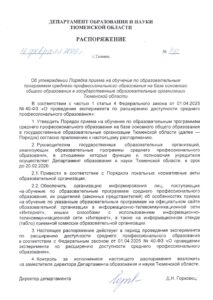 Порядок приема на обучение по образовательным программам среднего профессионального образования на базе основного общего образования в государственные образовательные организации Тюменской области